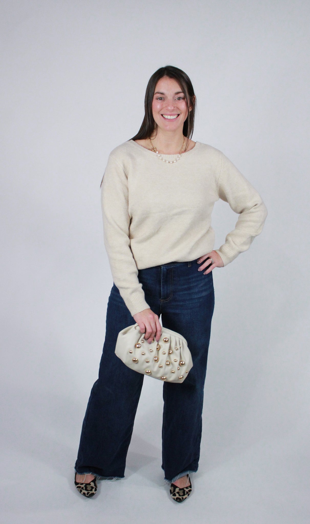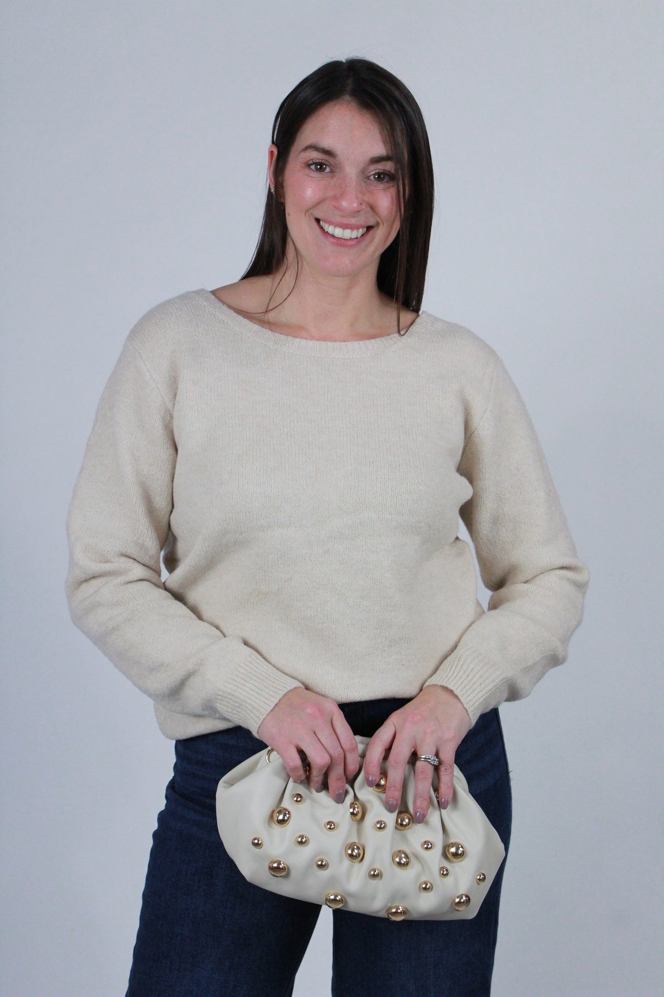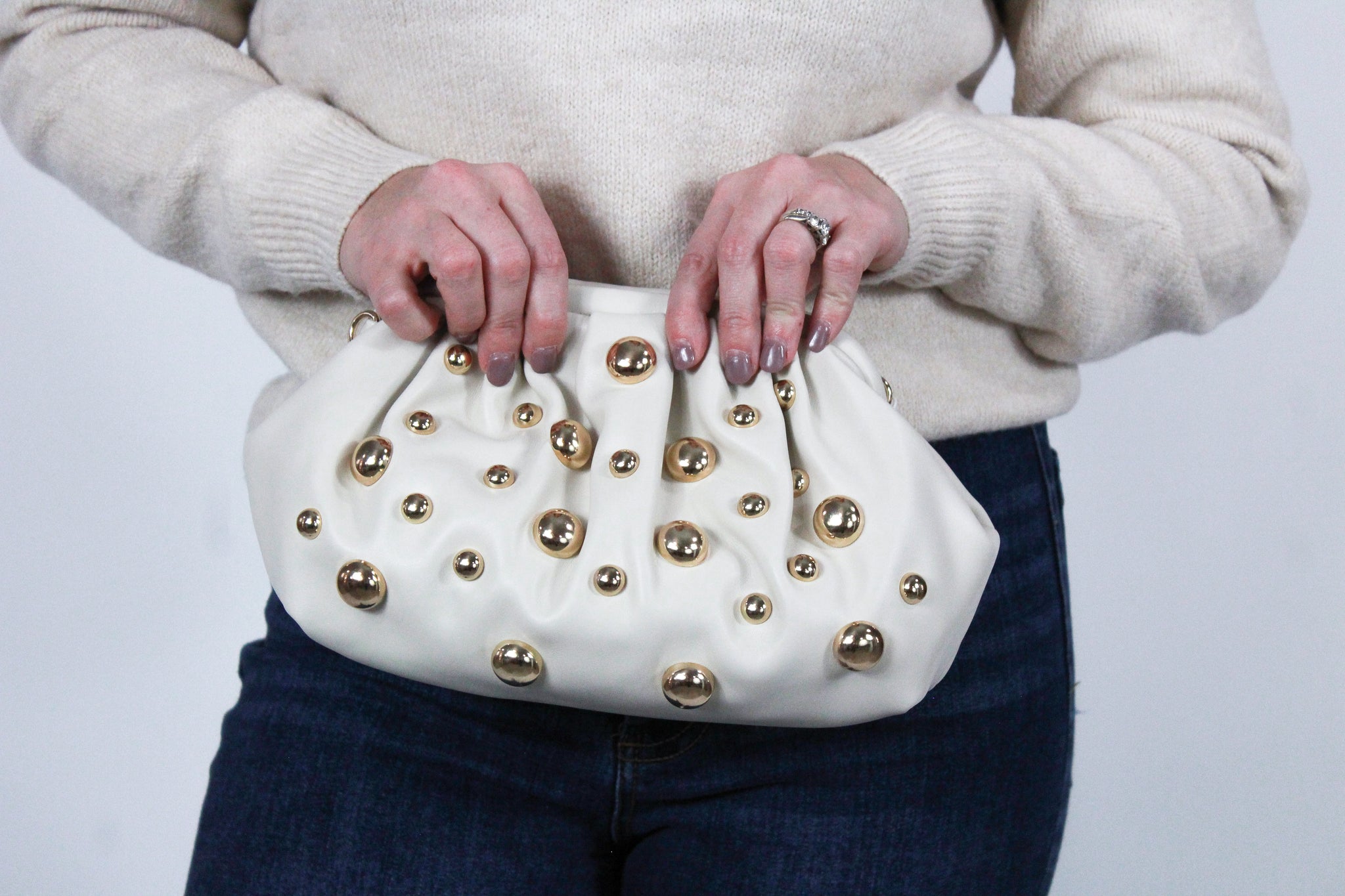 • Load image into Gallery viewer, Bags Carey Studded Clutch: Oatmilk