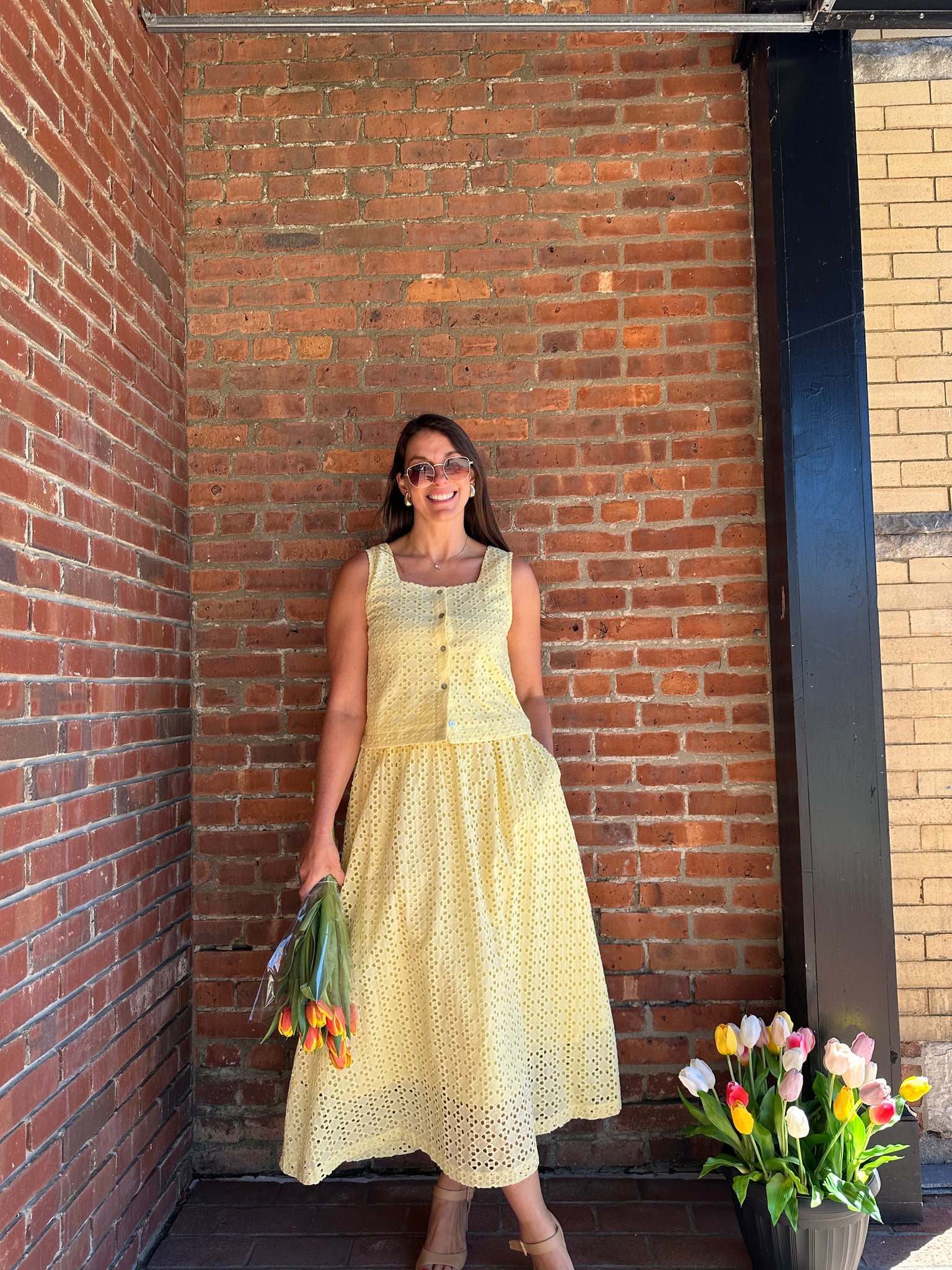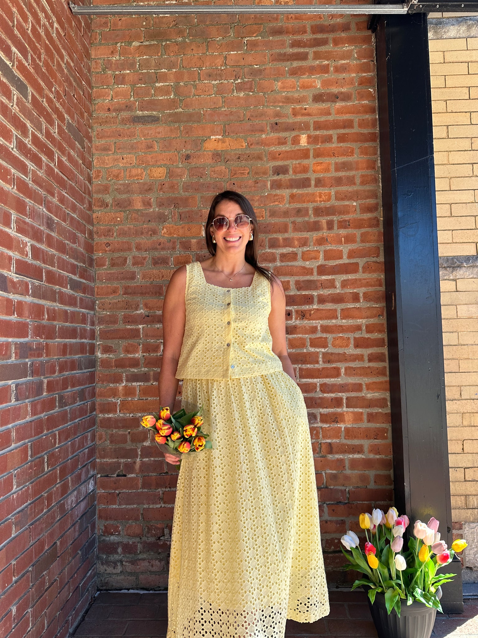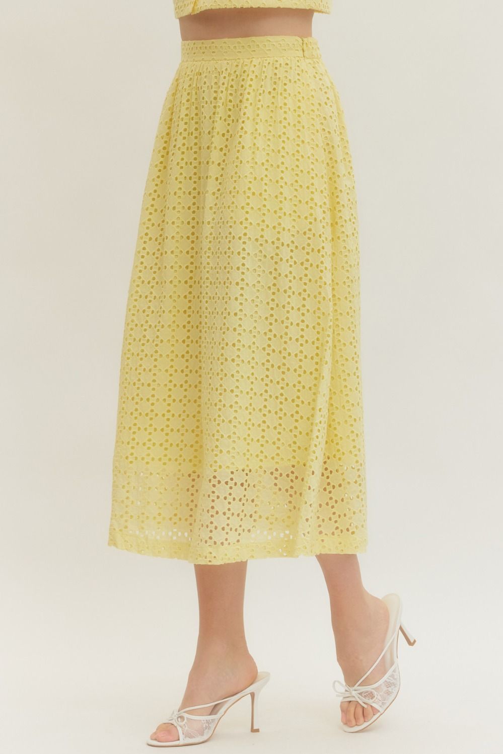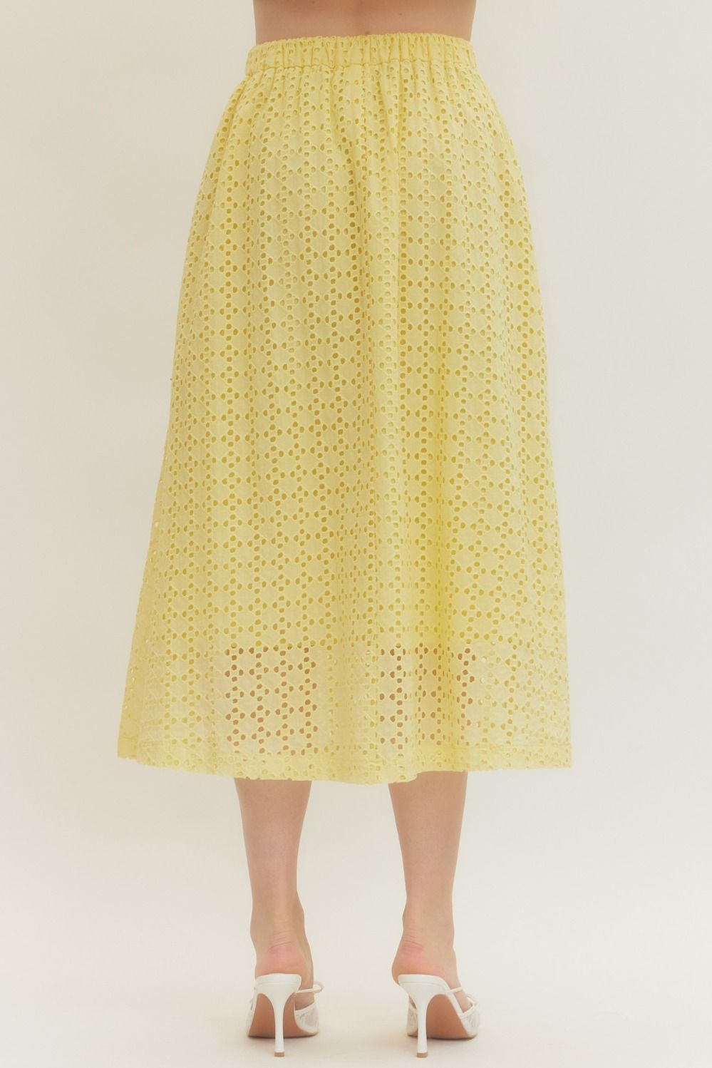 Everly | Eyelet Midi Skirt in Lemon