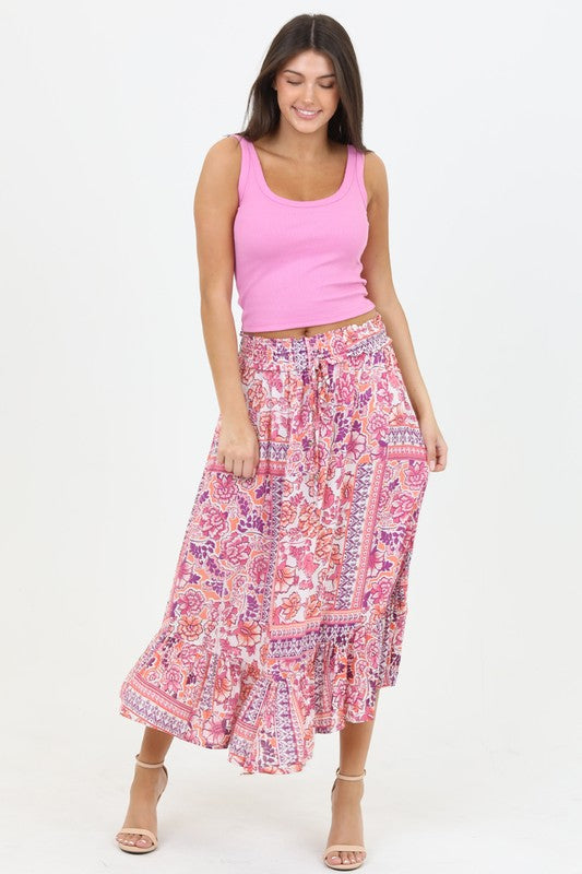Effortless, breezy, and stylish - this maxi skirt is the perfect addition to your summer wardrobe! With a smocked waist for a comfortable fit and a ditsy sage print for a touch of whimsy, this skirt will have you feeling confident and chic wherever you go. Whether you're headed to the beach or a brunch date, this skirt has got you covered. Embrace the carefree lifestyle and elevate your style with this must-have piece.