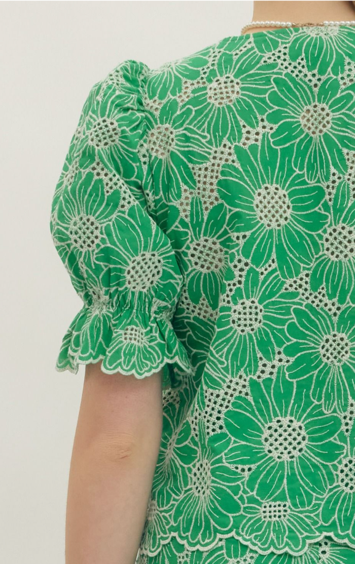 Penelope | Green Floral Embroidered Top