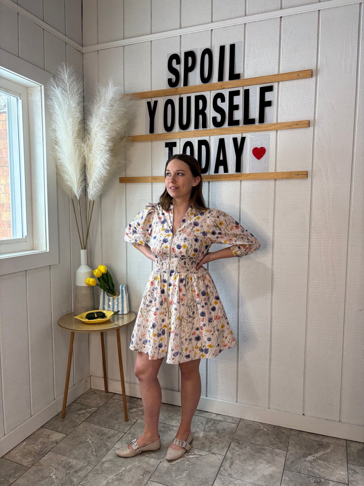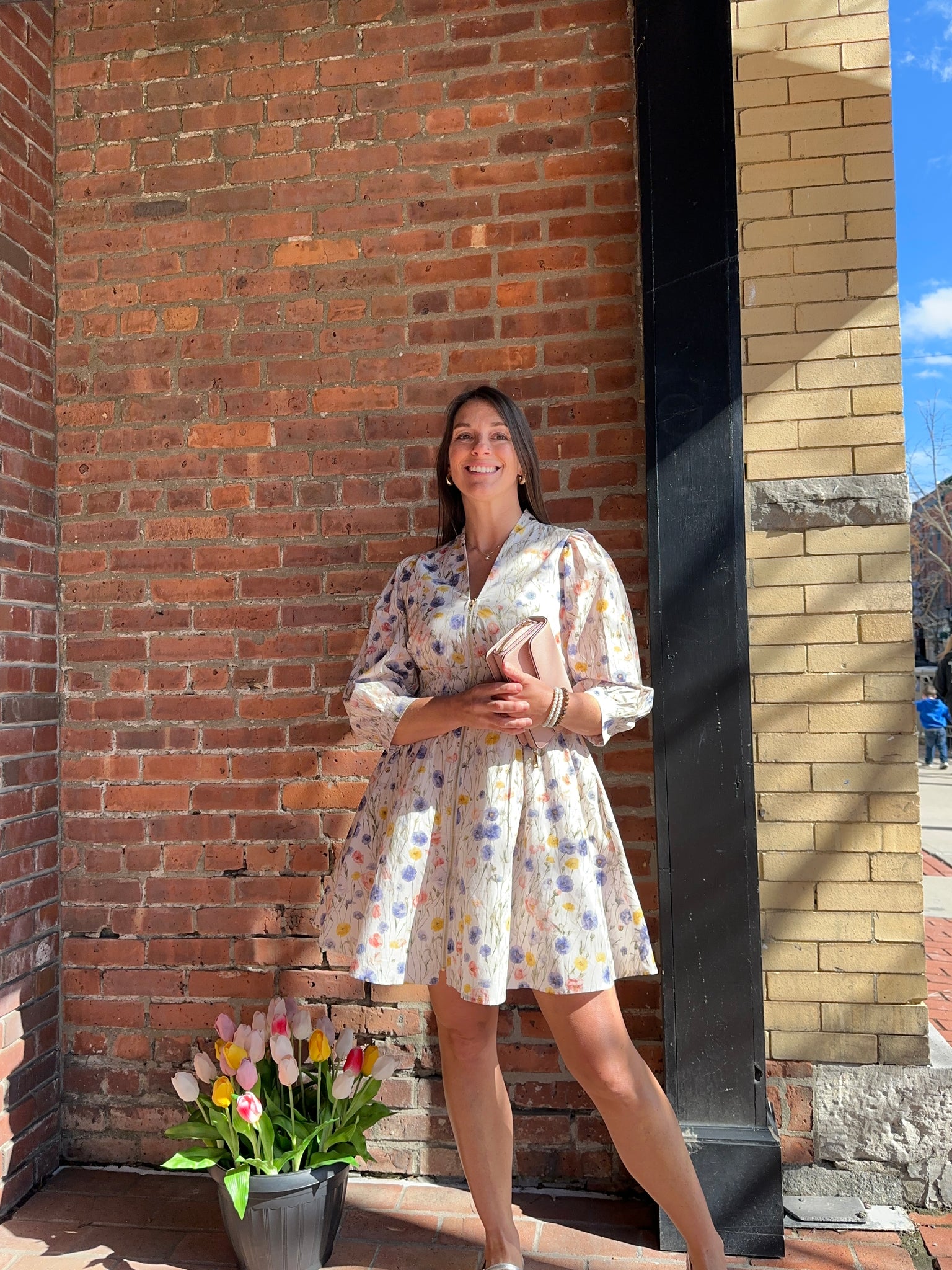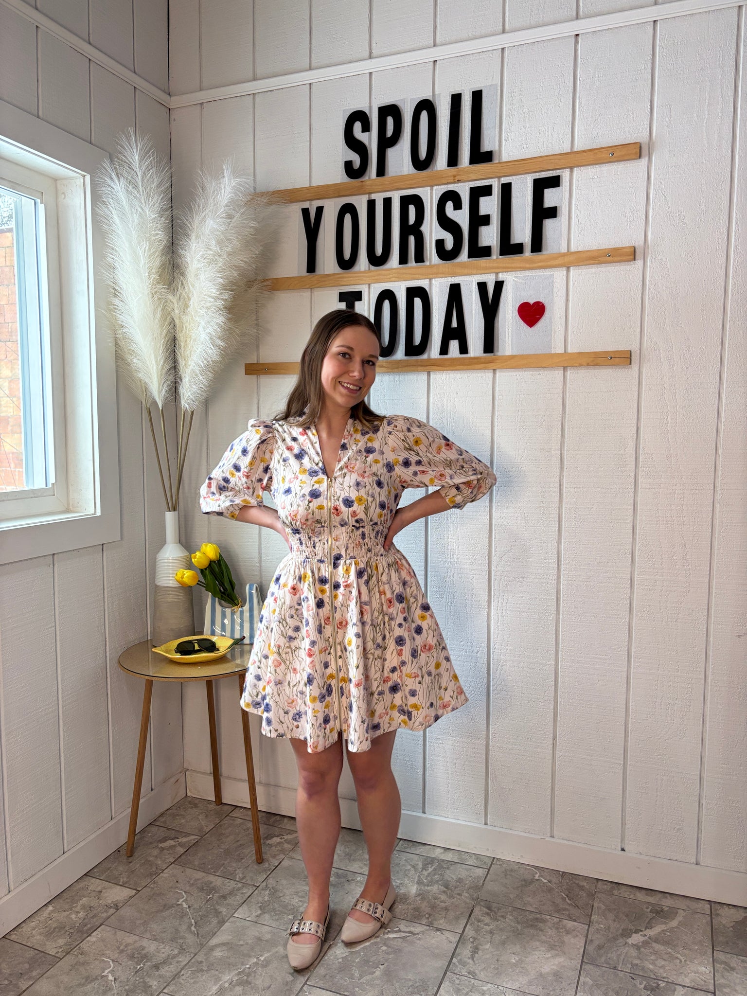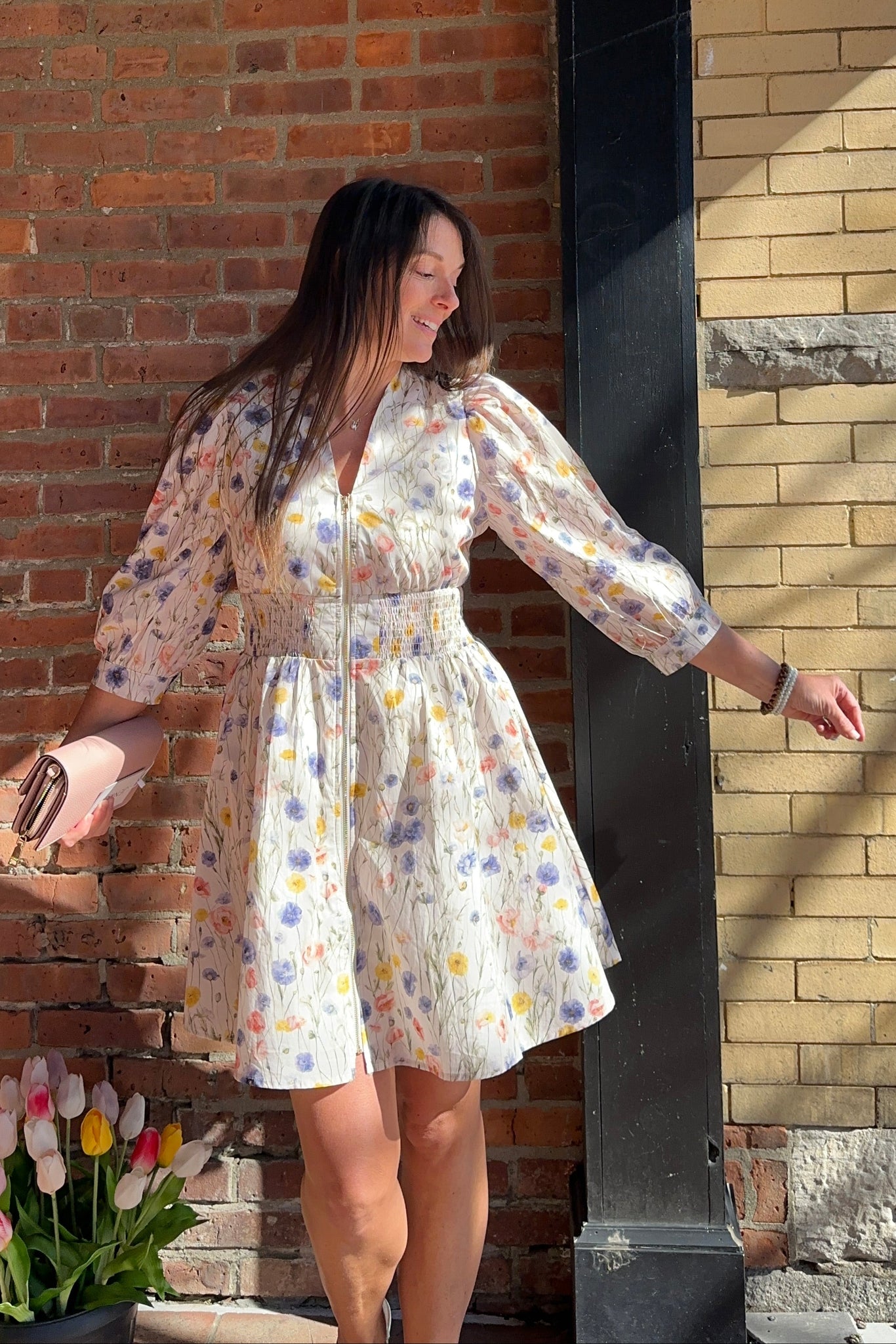 Emry Floral Cream Zipper Dress