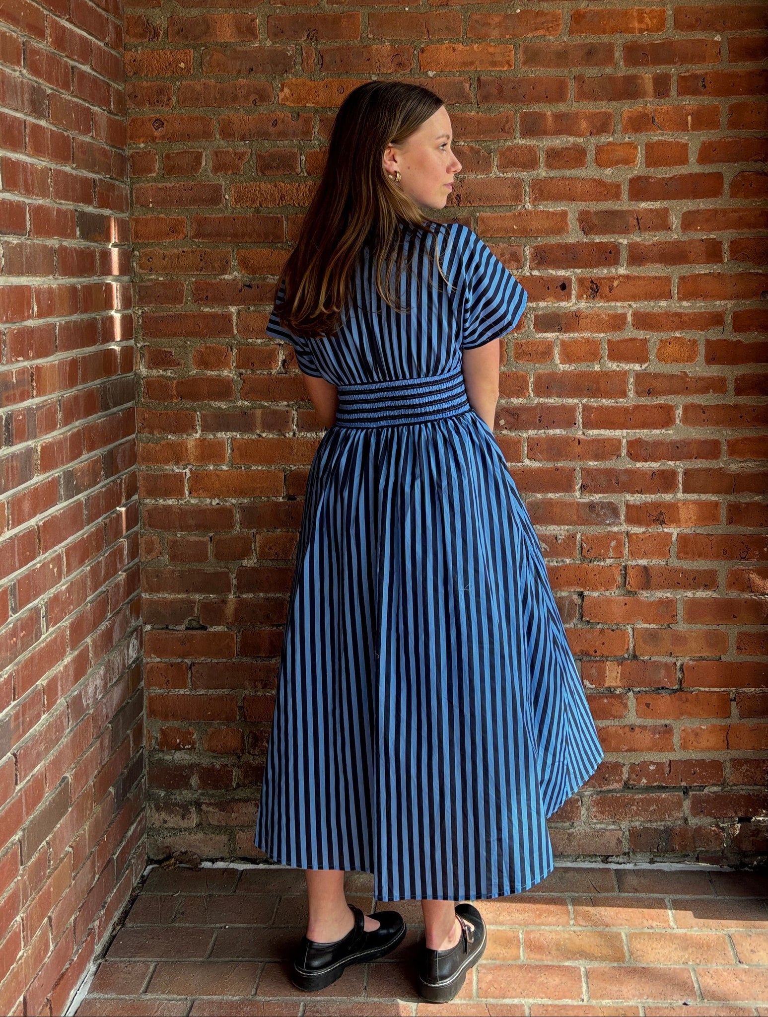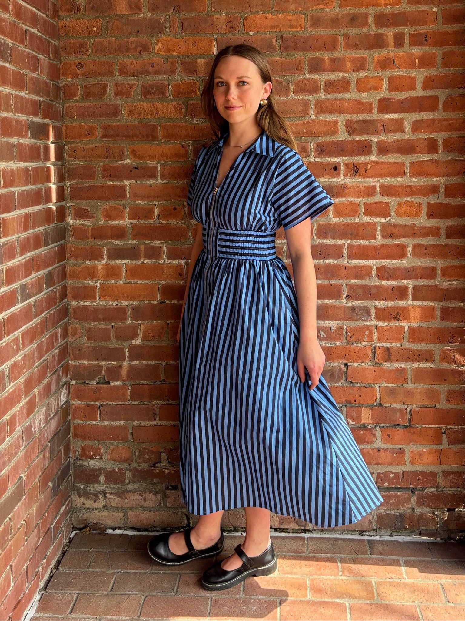 Gwyneth | Navy Vertical Stripe Zip Dress