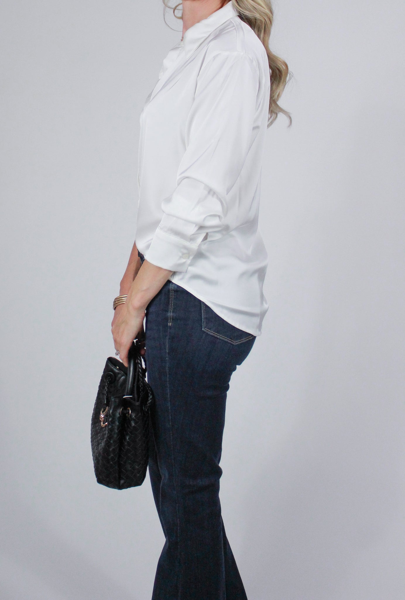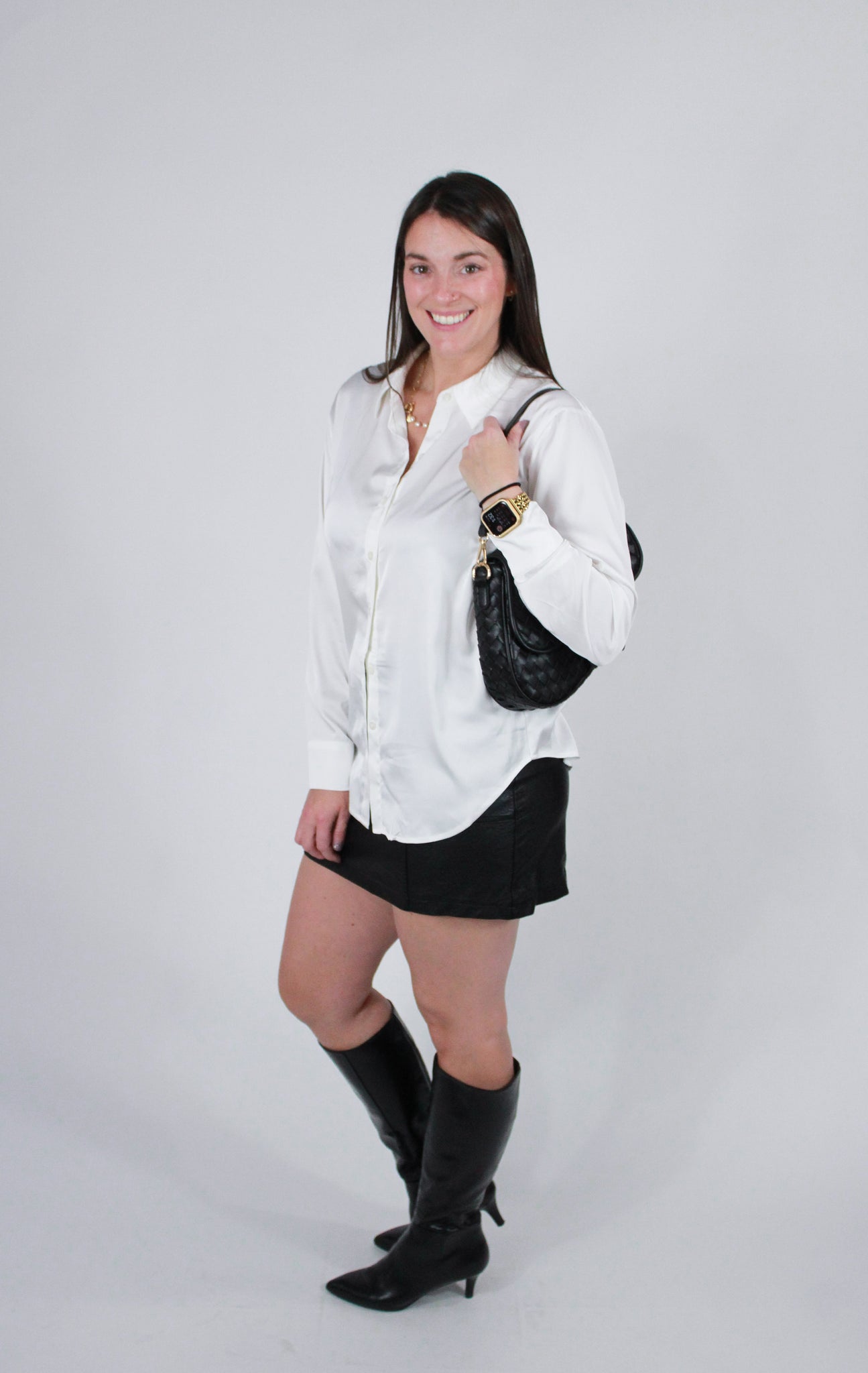 Ivory Satin Button Up