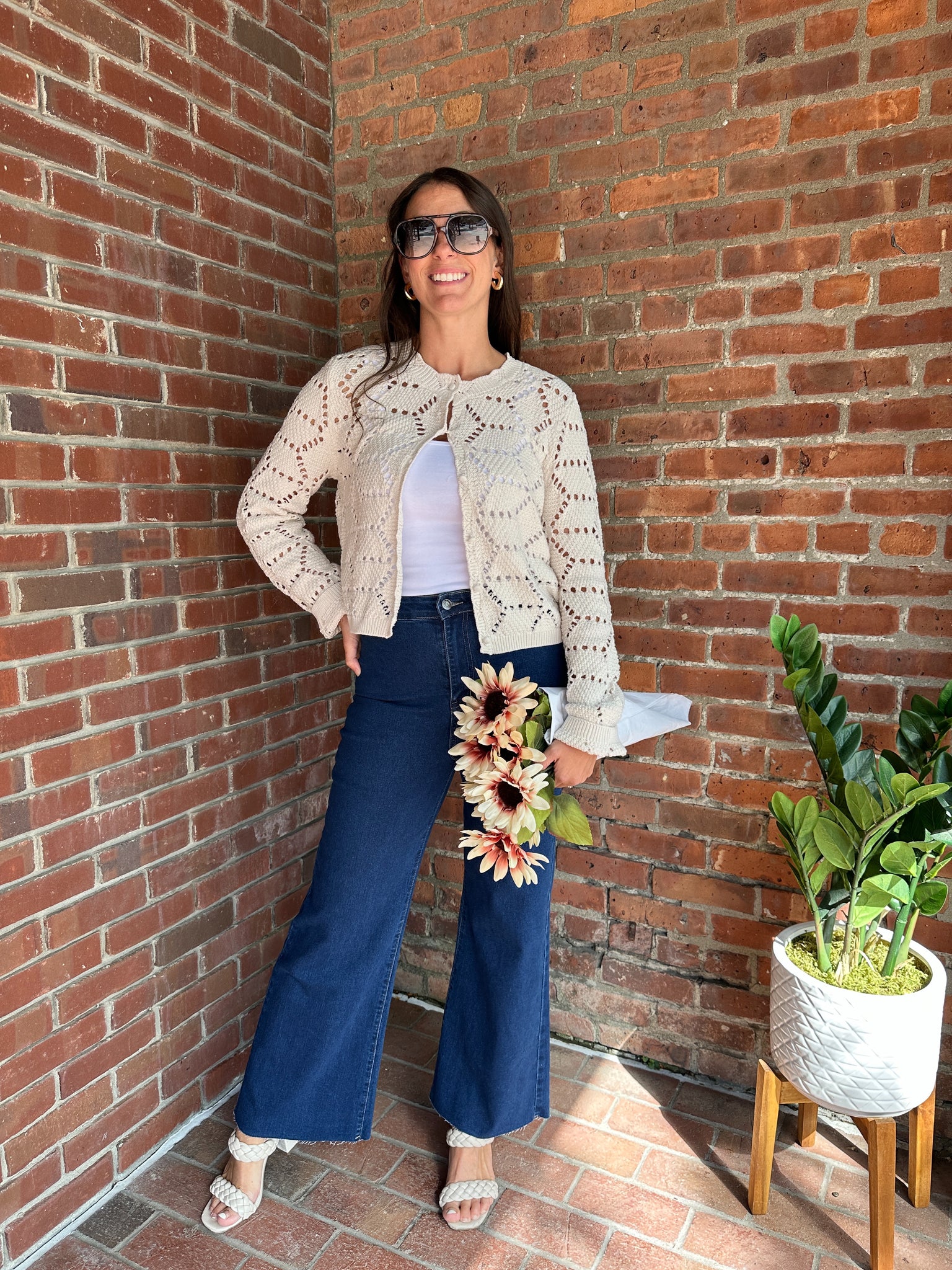 The Rosalyn Sweater Cardigan in Crystal offers a refined blend of comfort and elegance. Crafted from a soft knit fabric, this cardigan provides a lightweight yet cozy layer perfect for transitional weather. Its versatile design pairs effortlessly with both casual and dressier outfits, making it an essential addition to any sophisticated wardrobe. The subtle crystal hue adds a touch of understated luxury, enhancing your look with a gentle shimmer. Ideal for layering, the Rosalyn Sweater Cardigan combines timeless style with everyday practicality.