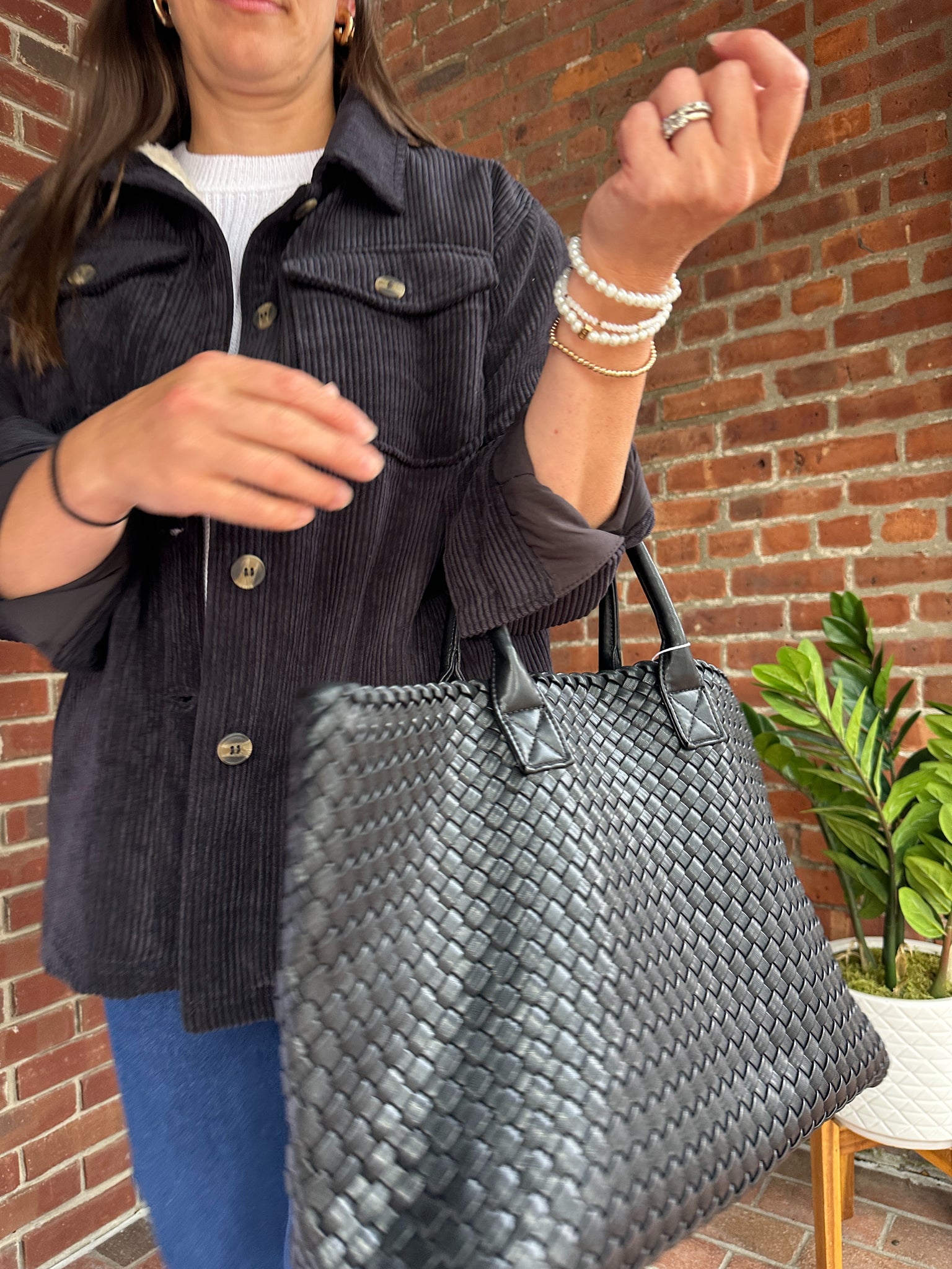 It's the perfect neutral to wear with any bottoms or shirt underneath! This shacket has functional tortoise buttons, a collar, two front envelope pockets, side pockets, and long sleeves with buttoned ends so it's easy to roll up.