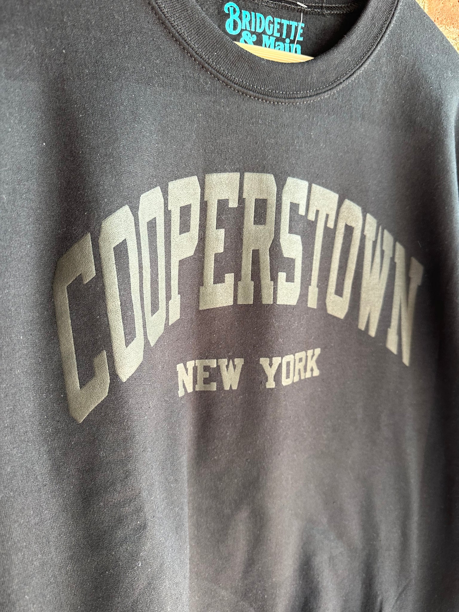 Stay warm and comfortable in style with our Cooperstown NY Graphic sweatshirt! Made from high-quality materials, this sweatshirt features a bold graphic design that will make a statement wherever you go. Perfect for showing off your Cooperstown pride and unique style, this sweatshirt is a must-have for your wardrobe. Don't miss out on the opportunity to elevate your fashion game and support your community. Order now and experience the benefits of expressing yourself through fashion!
