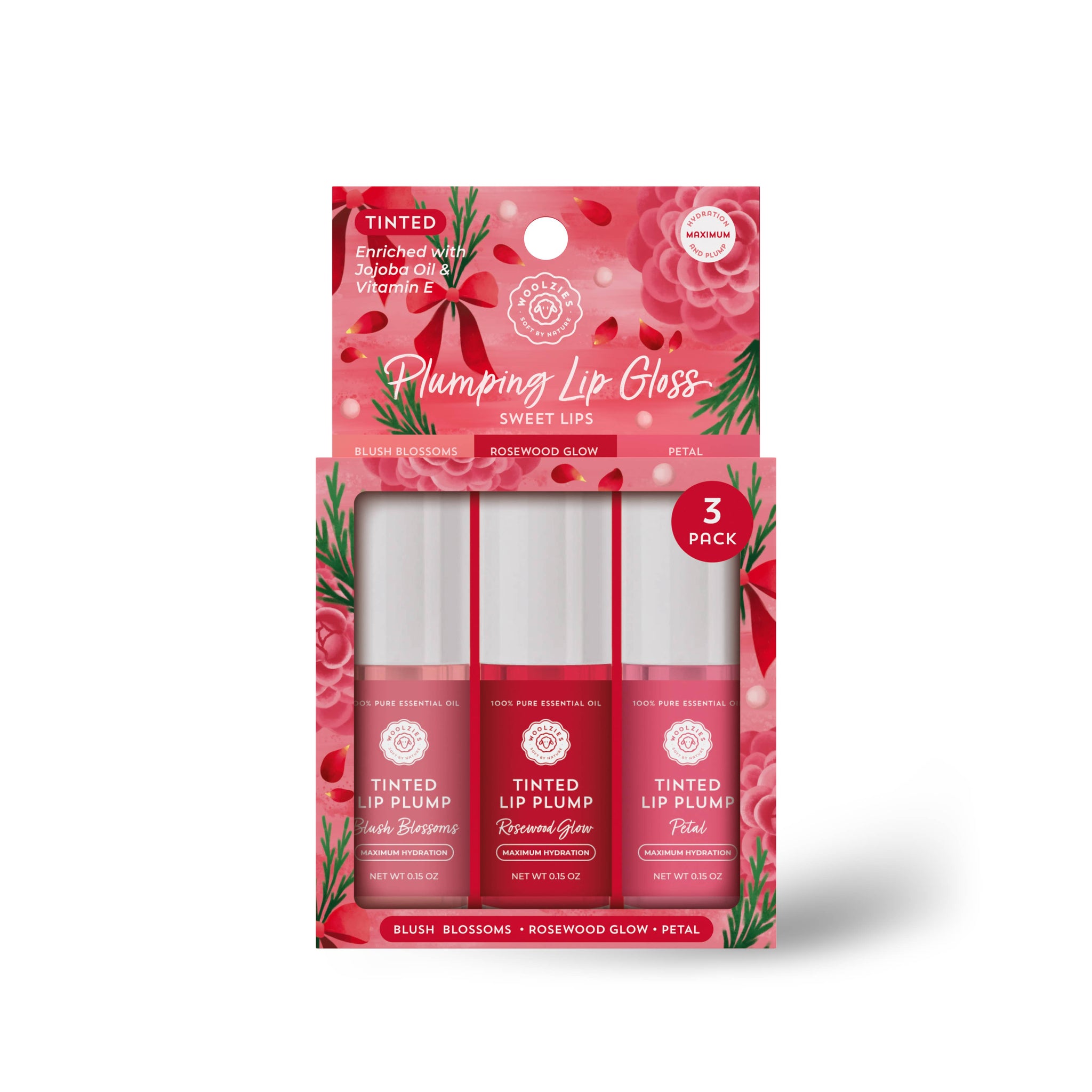 Includes 3 tinted plumping lip glosses: