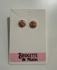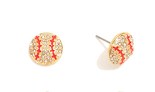 Metal Baseball Stud Earrings With Rhinestone Details